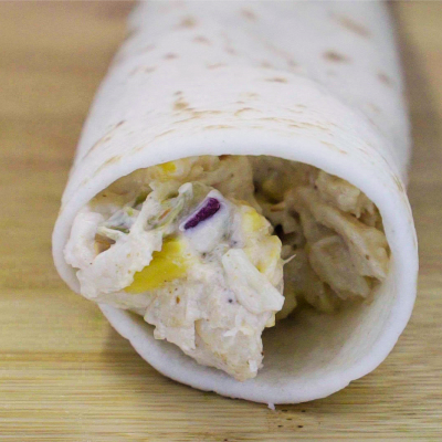 - Add a few tablespoons of the mixture to the lower edge of the tortilla, taking care to leave space on the ends so the mixture doesn't ooze out while baking. Roll it up and place it seam-down on the prepared baking sheet. Repeat with remaining ingredients. NOTE: if you want them to be extra crispy you can brush them with a little melted butter before baking them. Place in the oven and bake for 15-20 minutes or until the tortillas turn golden brown. Remove and allow to cool for 5 minutes before serving.