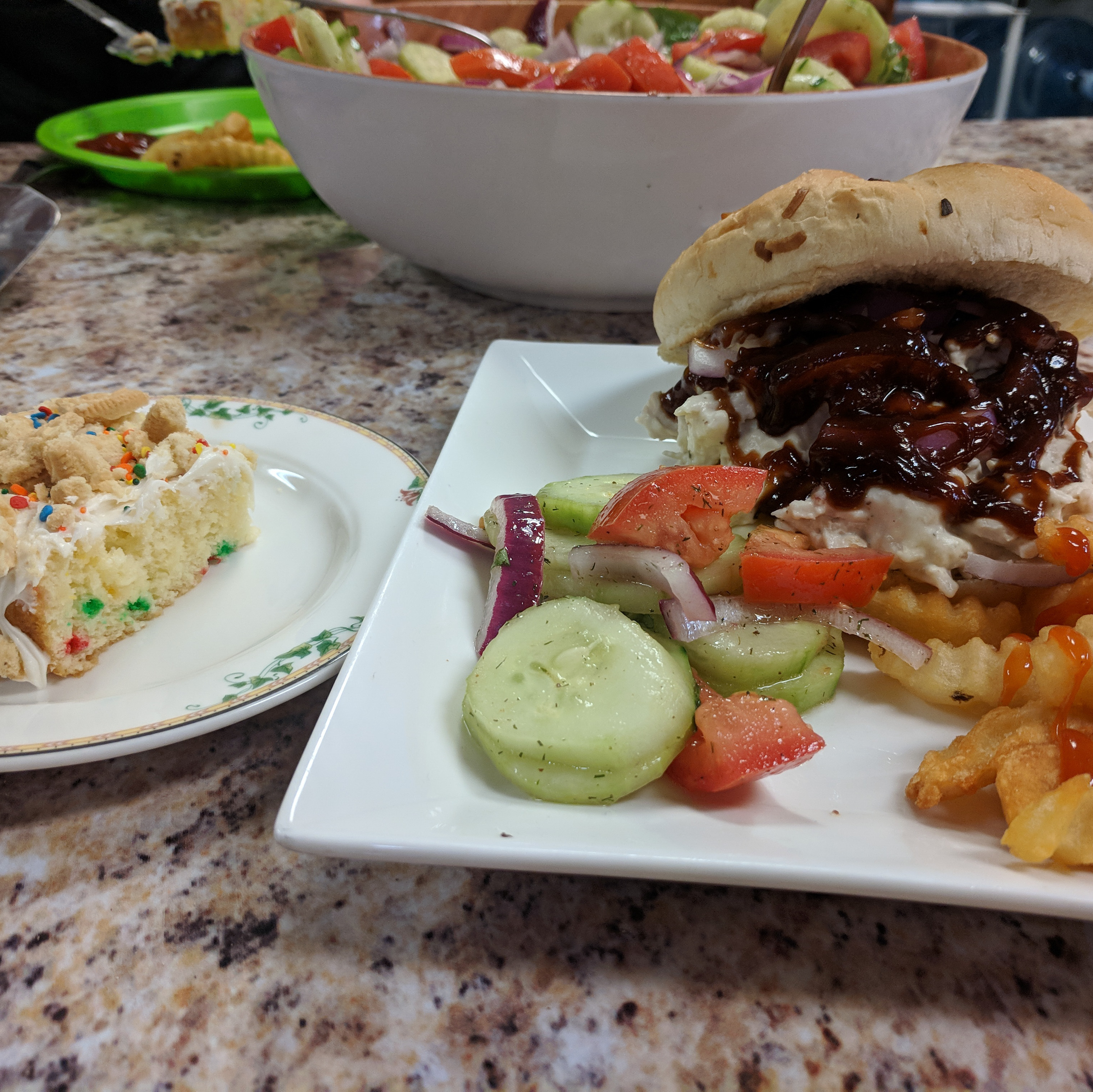 - Spread BBQ sauce on second half of the bun and top with a thin slice of red onion. Serve.