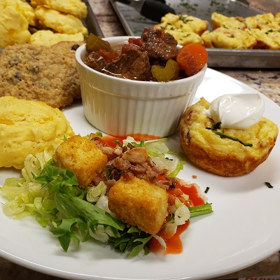 Get the recipe for that dish - Cheesy Mashed Potato Puffs! - as well as the recipe for Slow-Cooker Burgundy Stew with Herb Dumplings we tried, below: