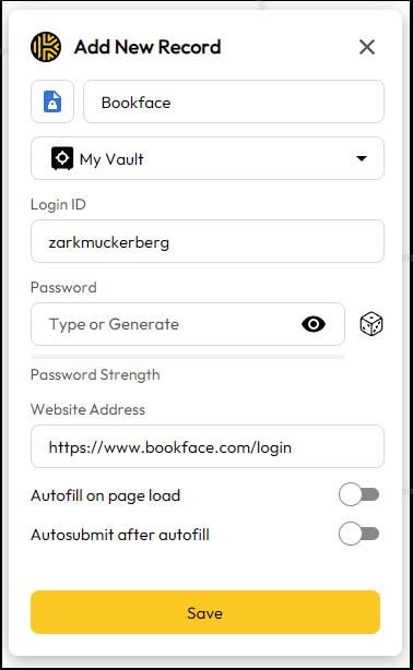 - Save the password record in your password manager and move on to the next account to repeat the steps.