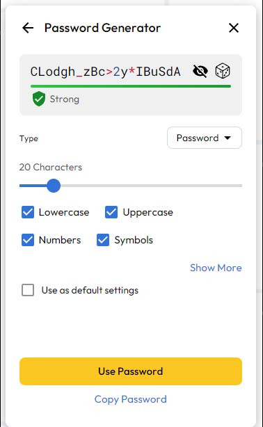 After generating the password, you can click Use Password and it should populate into the password field. If it still doesn’t (again, this is a problem with sites that aren’t built properly), you can right-click on the password field on the website and go to Keeper > Log In (sitename) > Fill Password.